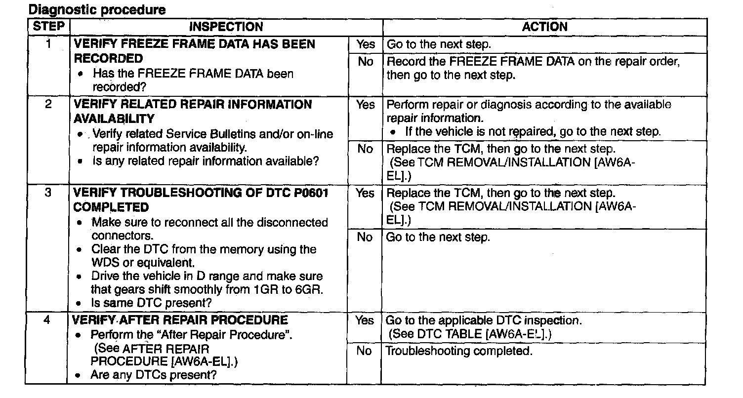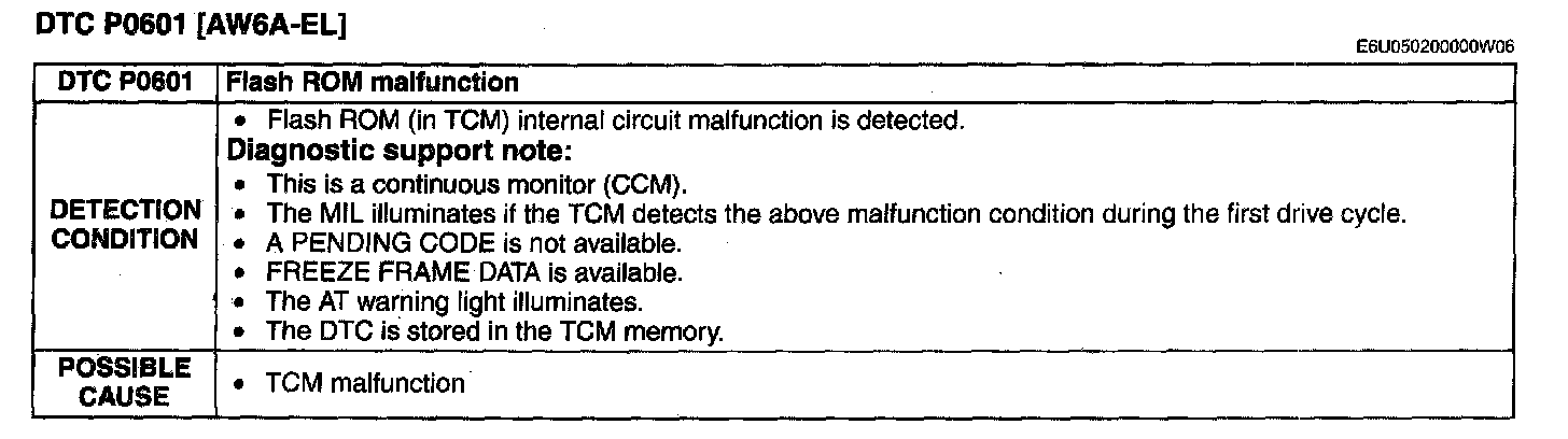 DTC P0601 [AW6A-EL]