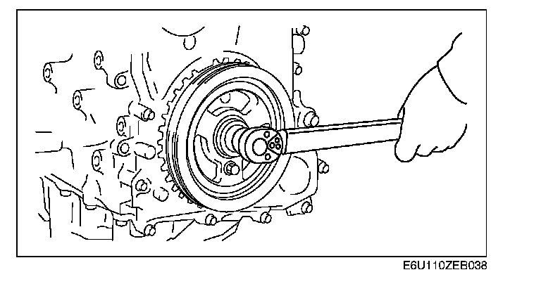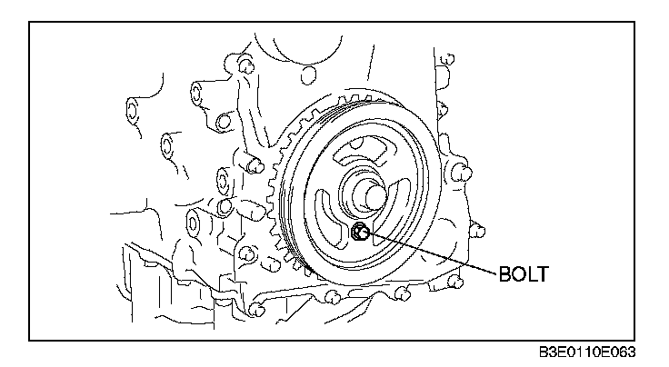 Crankshaft Pulley Lock Bolt Assembly Note1. Install the crankshaft pulley to the front cover using a bolt (M6 X 1.0). Temporarily tighten the bolt.