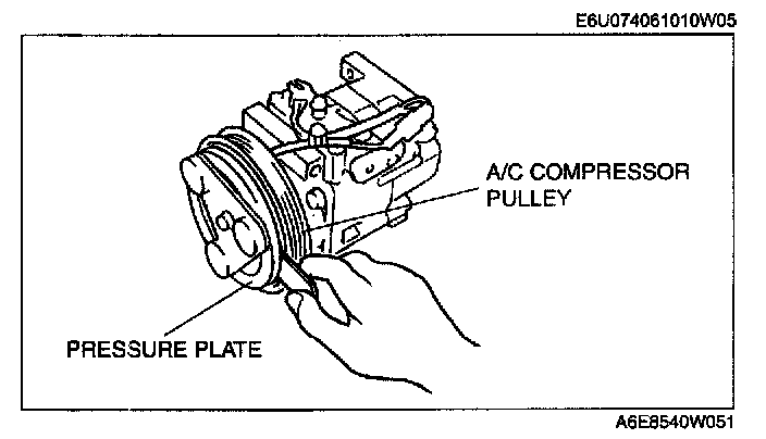 MAGNETIC CLUTCH ADJUSTMENT [L3 WITH TC]1. Measure the circumference around the entire circumference between the pressure plate and A/C compressor pulley using a thickness gauge.