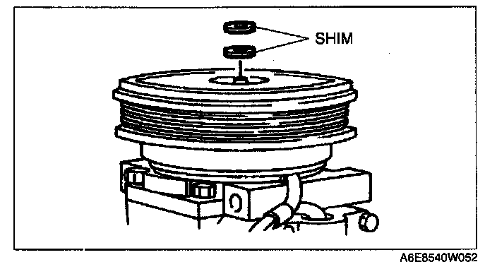 - If not within the specification, remove the pressure plate and adjust the clearance by changing the shim (0.2 mm (0.008 in), 0.5 mm (0.02 in)) or the number of shims.