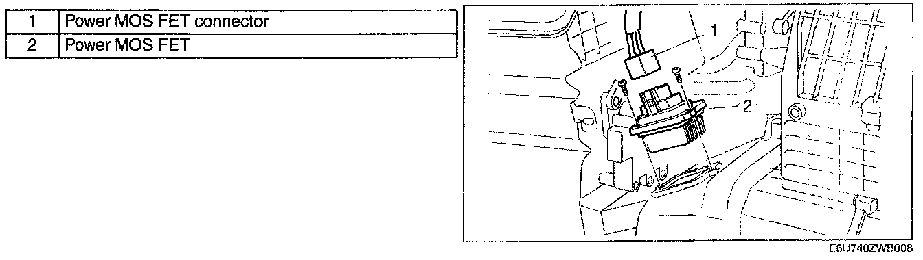 POWER METAL OXIDE SEMICONDUCTOR FIELD EFFECT TRANSISTOR (POWER MOS FET) REMOVAL/INSTALLATION)1. Disconnect the negative battery cable.