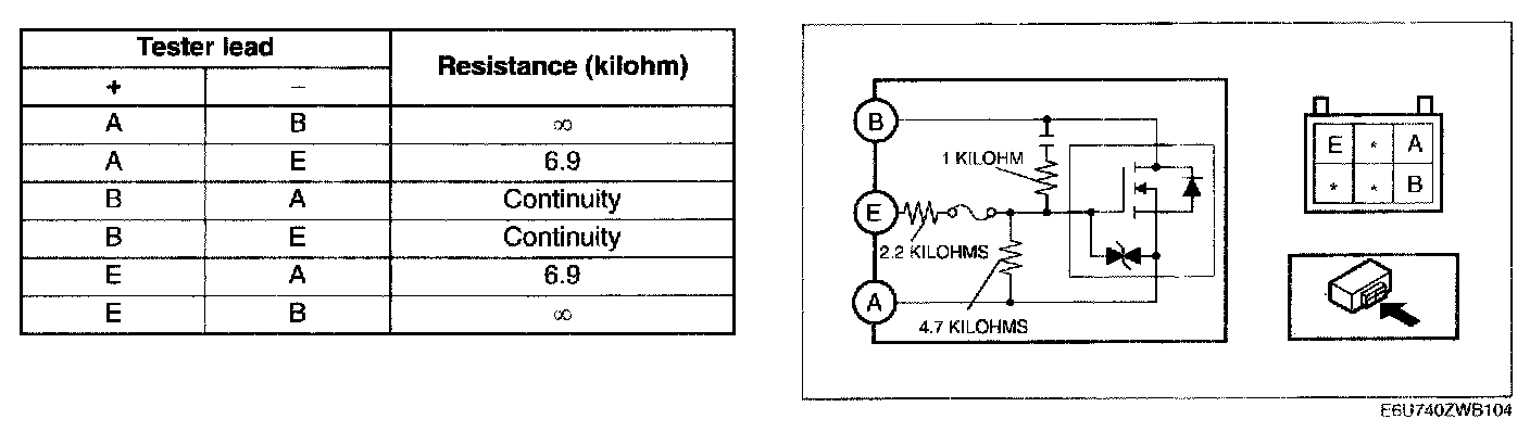 POWER METAL OXIDE SEMICONDUCTOR FIELD EFFECT TRANSISTOR (POWER MOS FET) INSPECTION [L3 WITH TC]1. Verify that the resistance between the terminals of the power MOS FET is as shown in the table.