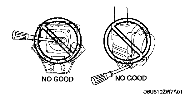 - Inserting a screwdriver or similar object into the connector of an air bag module or a pre-tensioner seat belt may damage the connector and cause the air bag module or the pre-tensioner seat belt to operate (deploy) improperly, which may cause serious injury. Never insert any foreign objects into the air bag module or seat belt connectors.