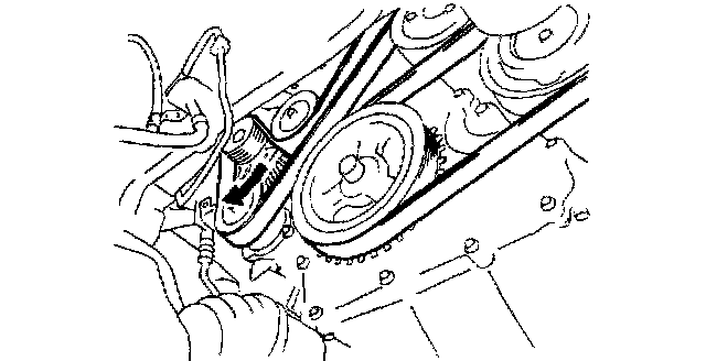 2. Rotate the drive belt auto tensioner in the direction shown in the figure and remove the drive belt.