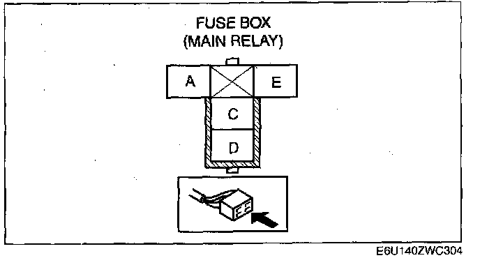 - MAF sensor terminal A and main relay terminal C