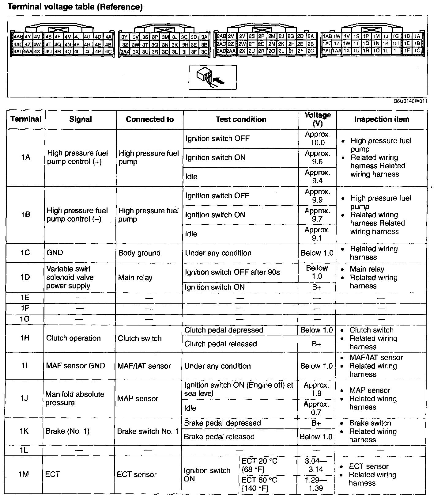 Terminal Voltage Table(Reference) - Terminal(1A-1M):