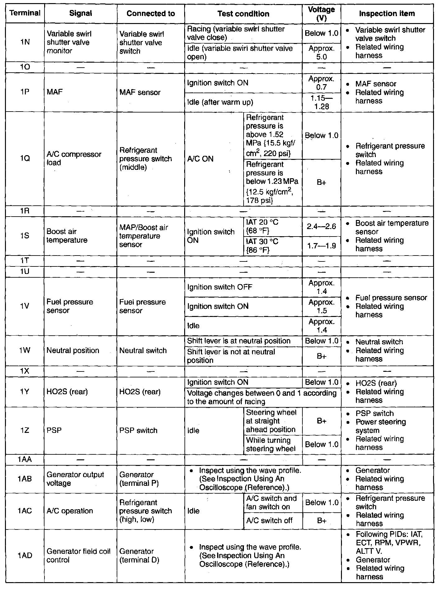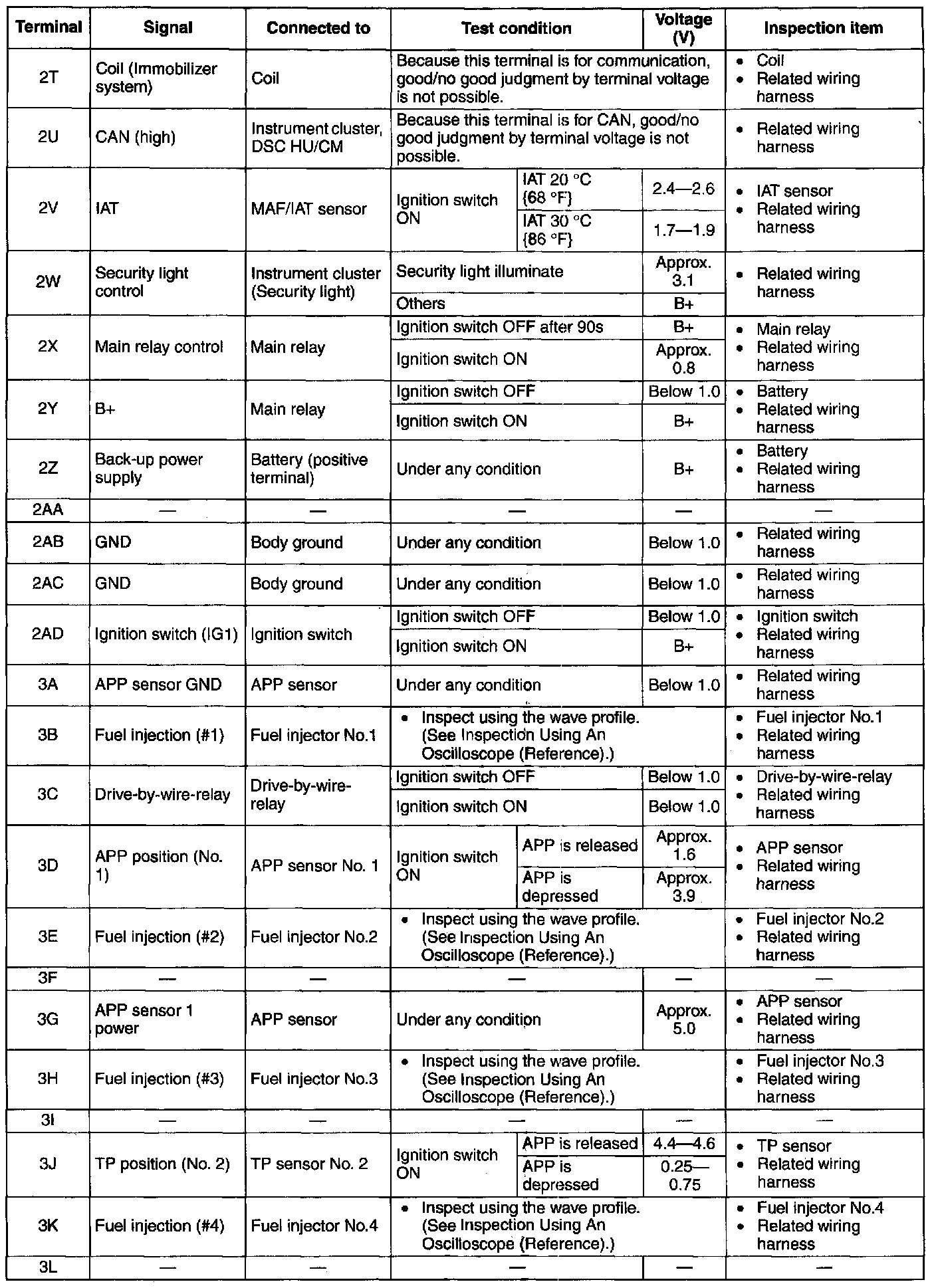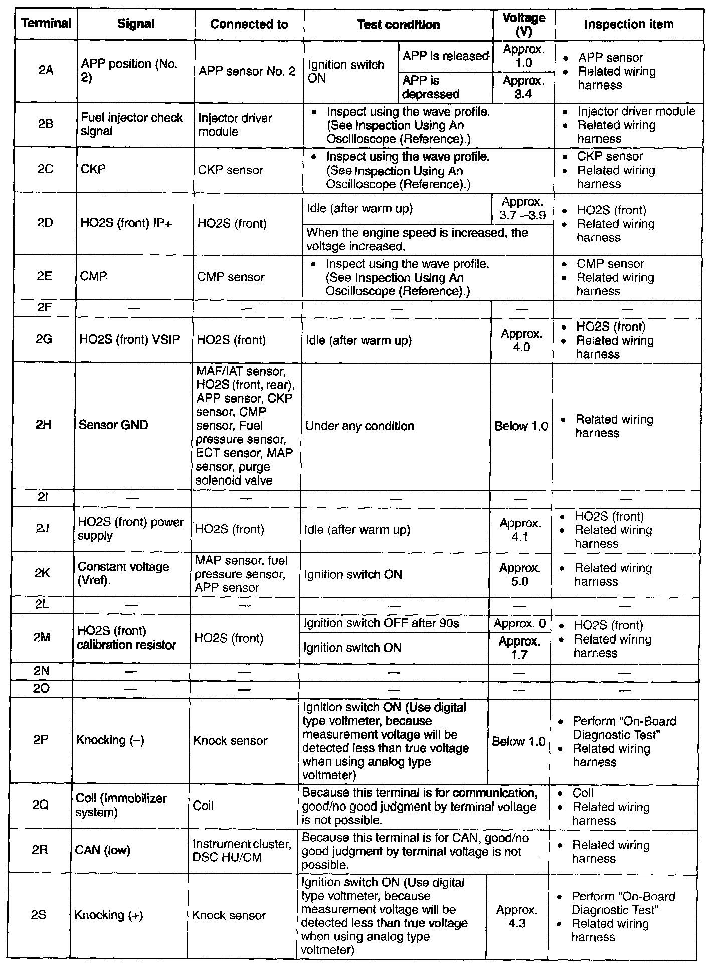 Terminal Voltage Table(Reference) - Terminal(2A-2S):