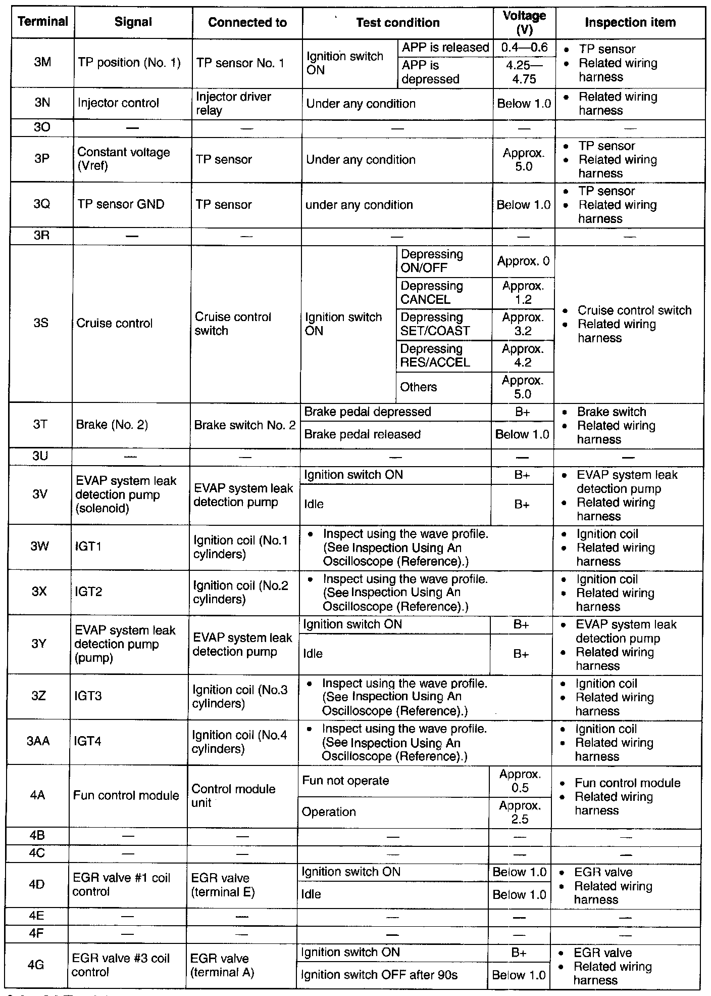 Terminal Voltage Table(Reference) - Terminal(3M-4G):