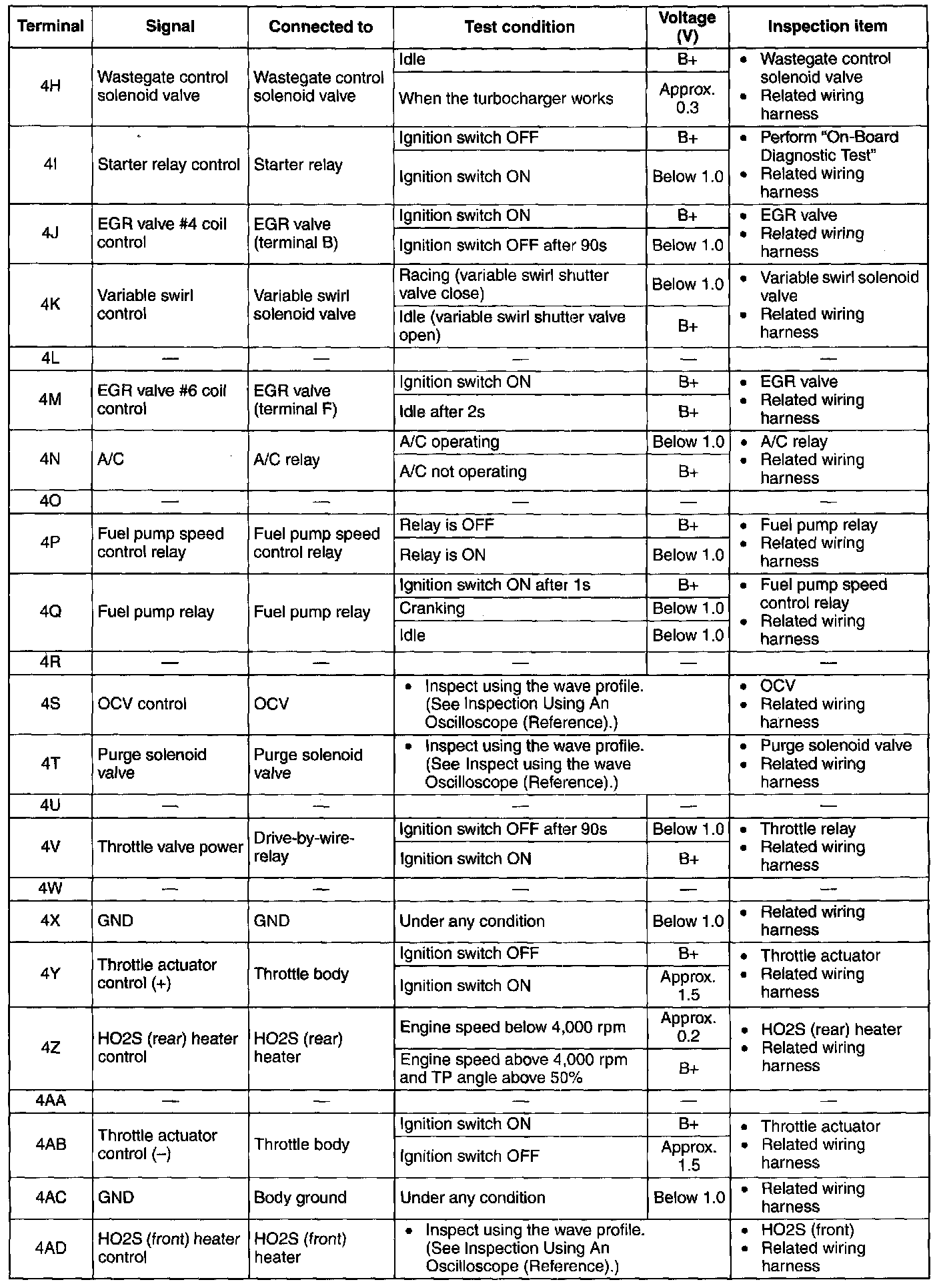 Terminal Voltage Table(Reference) - Terminal(4H-4AD):