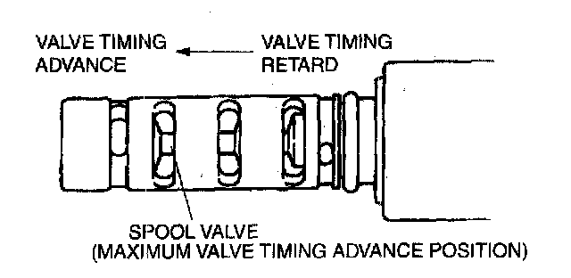 6. Stop applying battery positive voltage and verify that the spool valve returns to the maximum valve timing advance position.