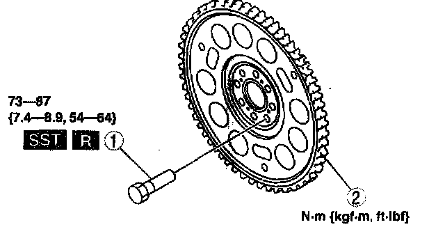 Tightening torque 73 - 87 Nm (7.4 - 8.9 kgf-m, 54 - 64 ft. lbs.)