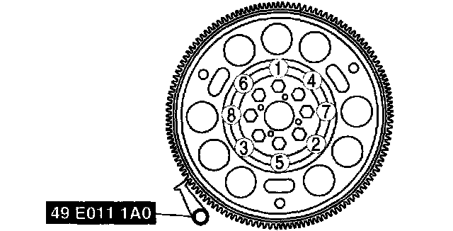 4. Tighten the new drive plate mounting bolts in two or three steps in the order shown.