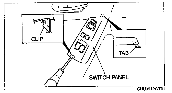3. Remove the switch panel from the front door trim keeping the tab from catching.