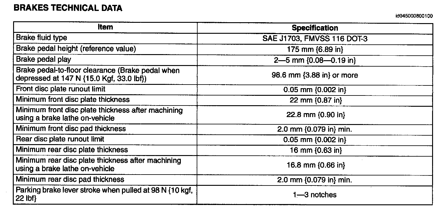 Brakes Technical Data: