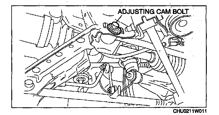 2. Rotate the adjusting cam bolt in either direction to adjust the toe-in.