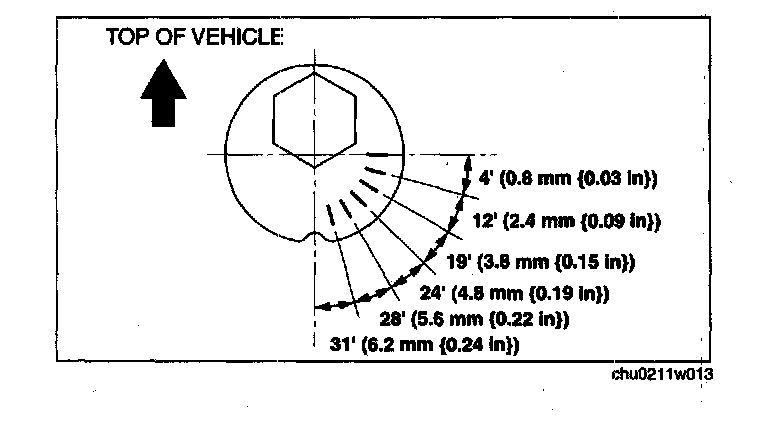 ^ Refer to the following figure for the adjusting angle per one graduation of the toe-in gauge.