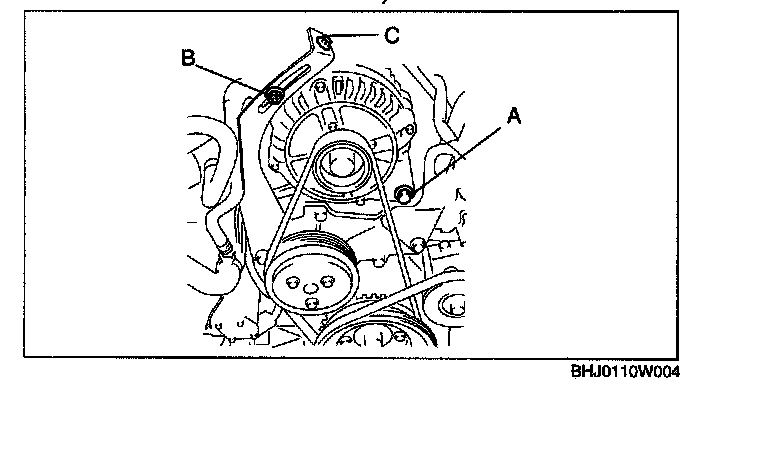 3. Adjust the drive belt deflection and tension by turning adjusting bolt C to the specification.