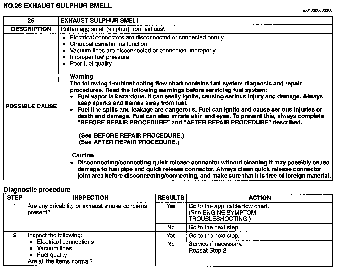 No.26 Exhaust Sulphur Smell