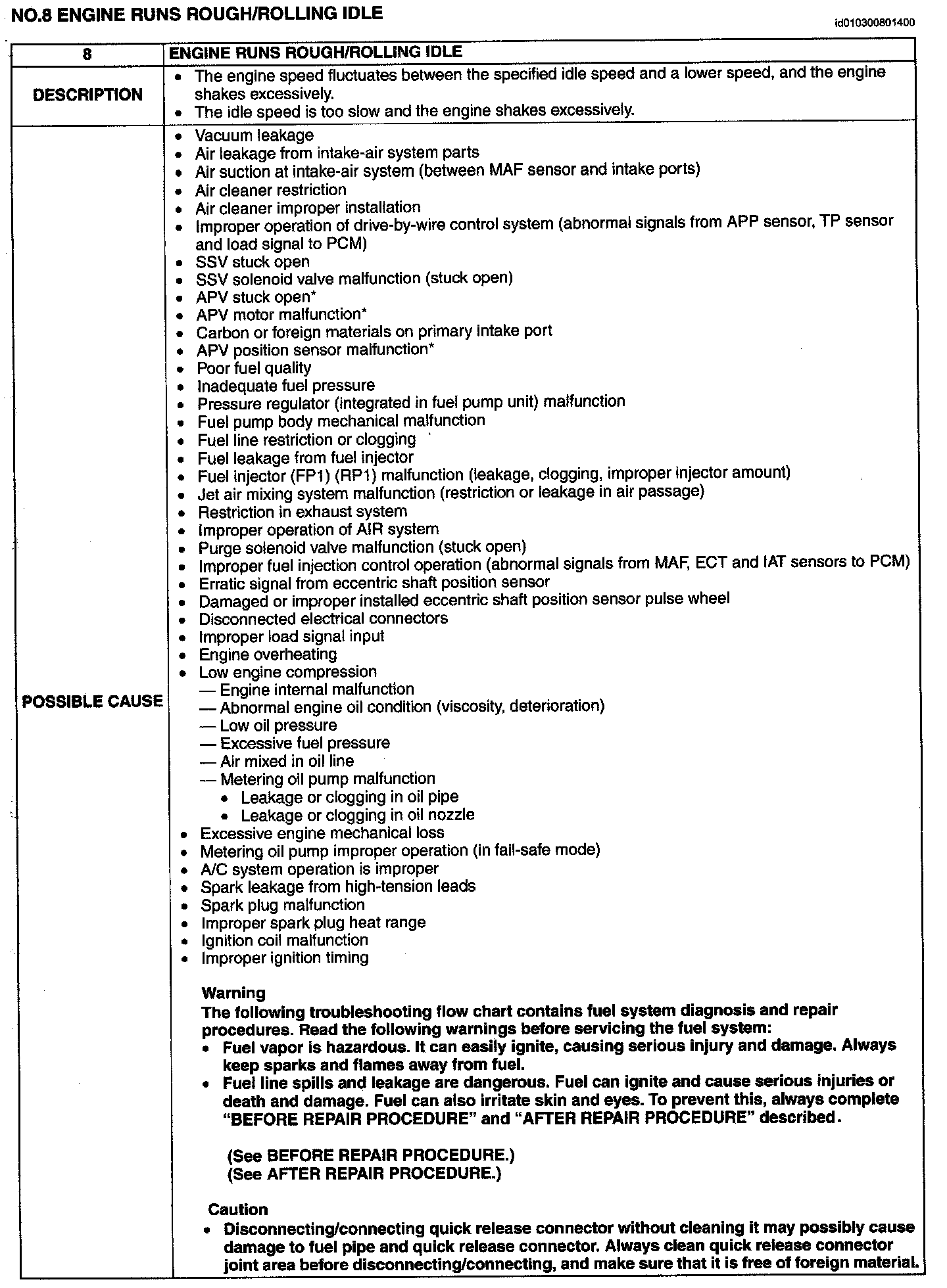No.8 Engine Runs Rough/Rolling Idle