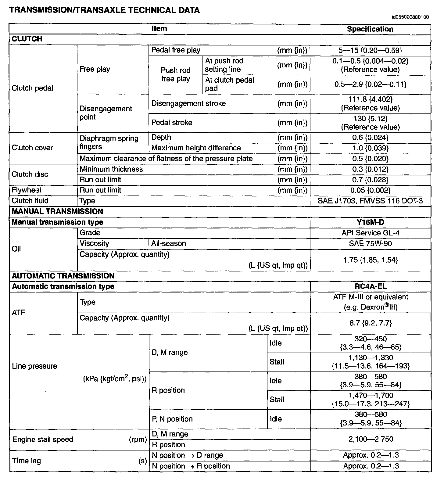 TRANSMISSION/TRANSAXLE TECHNICAL DATA (Part 2):