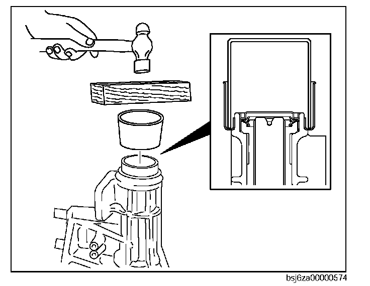 119. Assemble a new oil seal to the extension housing in the position shown in the figure using the SST and a hammer.