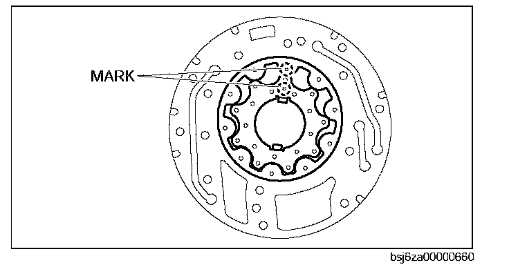 5. Align the oil pump shaft with the mark on the pump housing, and install it.