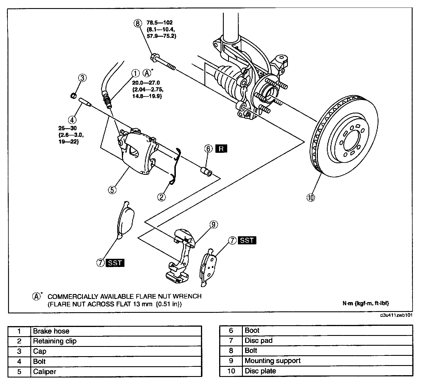 1. Install the brake hose to the caliper.