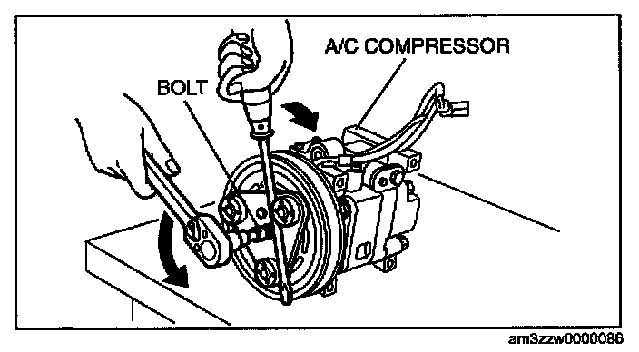 2. When installing a new A/C compressor body, replace the recommended bolt.