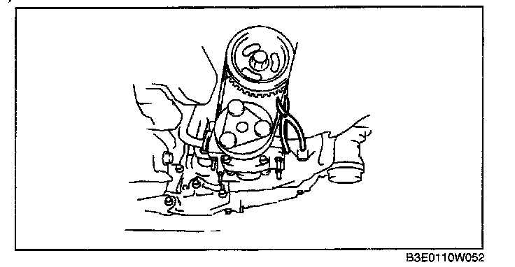 - Do not pass jig (B) through the A/C compressor mount hole.