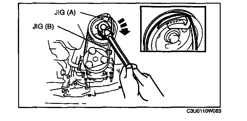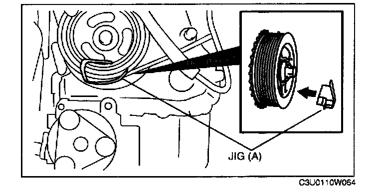 3. Install a jig (A) to the crankshaft pulley as shown in the figure.