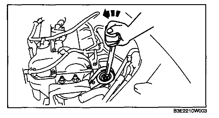 3. Turn the center of the auto tensioner pulley counterclockwise to release tension to the drive belt tension.
