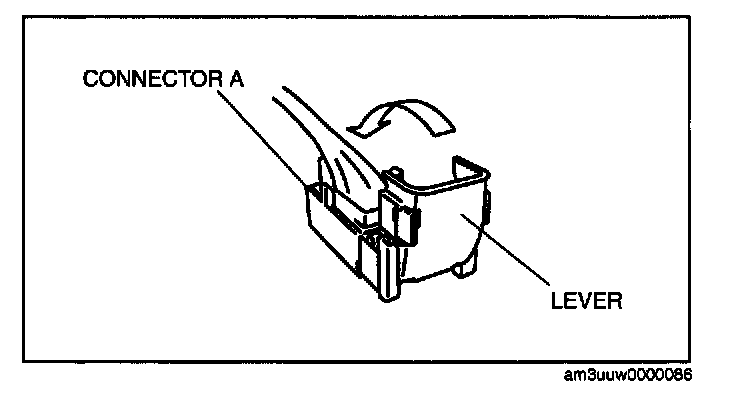 2. Rotate the lever in the direction of the arrow and remove connector A.