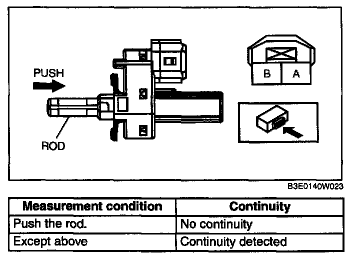 2. Verify that the continuity between CPP switch terminals A and B is as indicated in the table.
