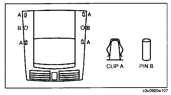1. Pull the lower LCD unit outward, detach clip A and pin B from the dashboard, and then remove the LCD unit.