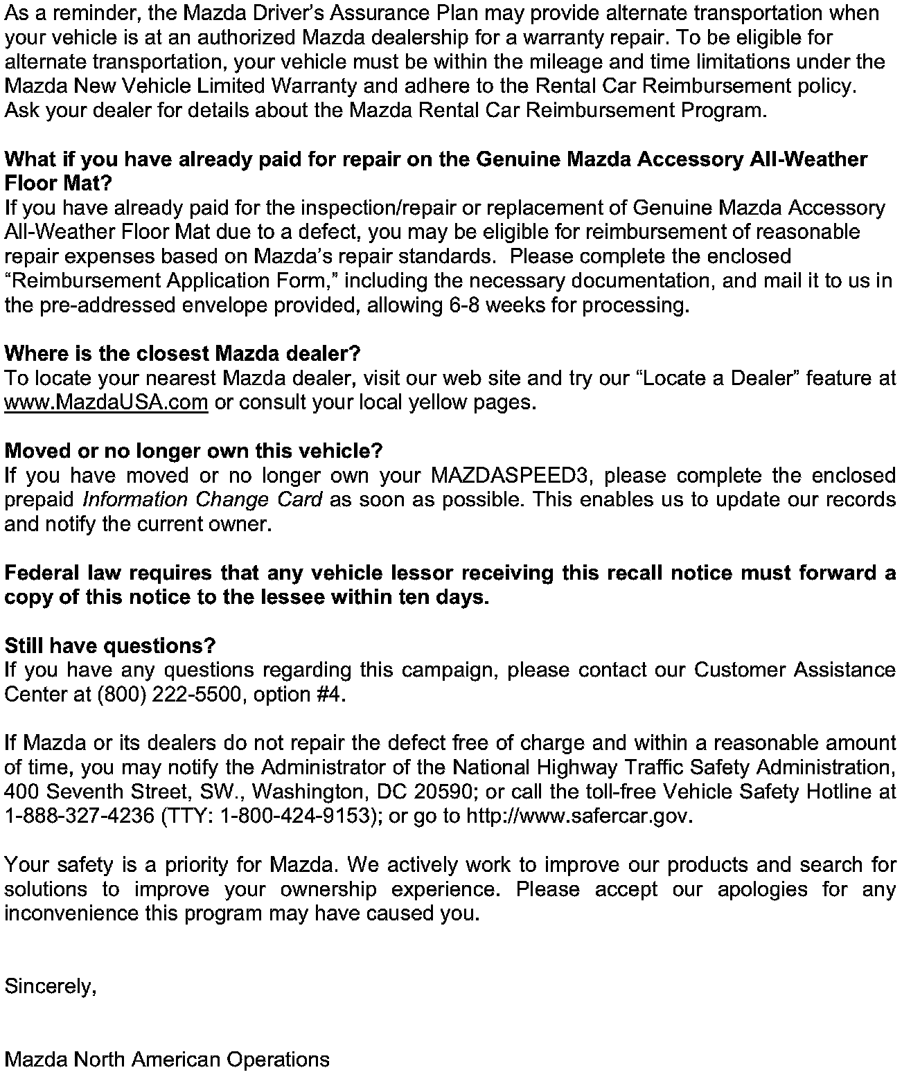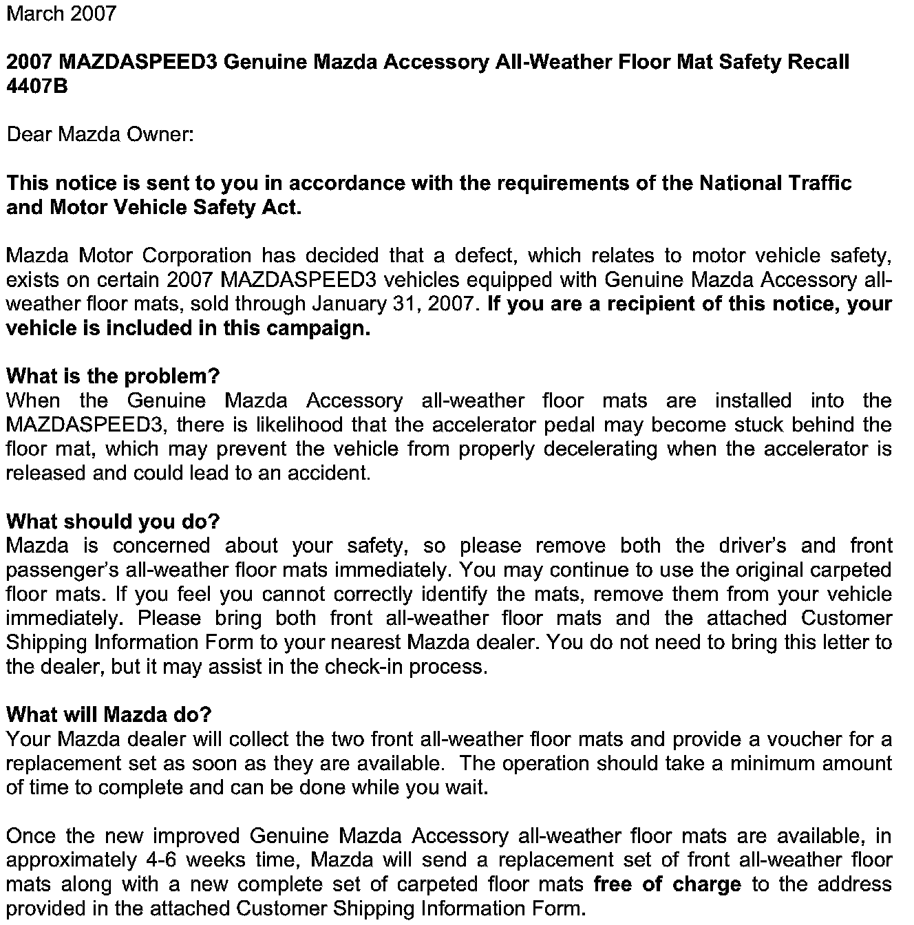 Recall - Floor Mat Accelerator Pedal Interference