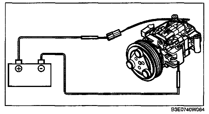 1. Connect battery positive voltage to magnetic clutch terminal A and the A/C compressor body to ground.