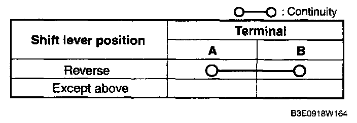 Verify that the continuity between the back-up light switch terminals is as indicated in the table.