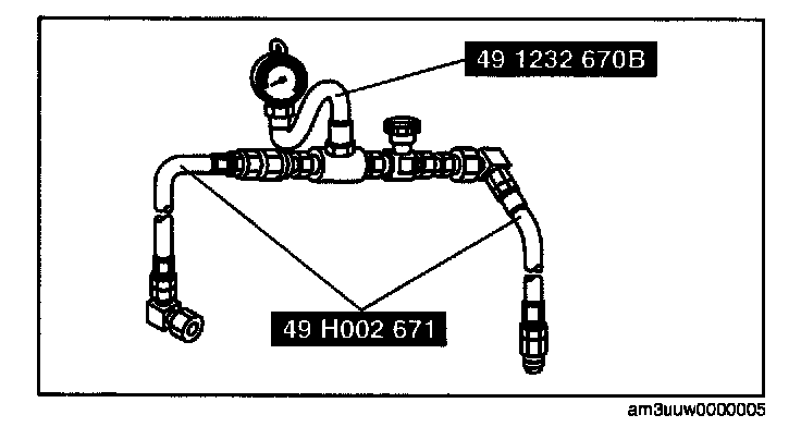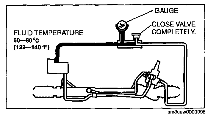 9. Turn the steering wheel fully to the left and right, then measure the fluid pressure generated at the gear housing.