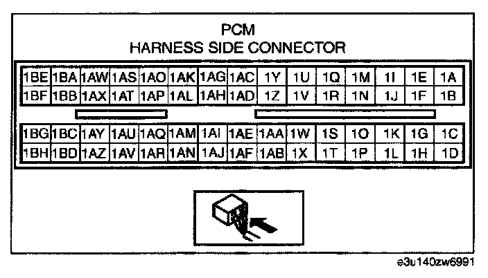 - MAF/IAT sensor terminal E and PCM terminal 1AS*1, 1AV*2, 1AA*3