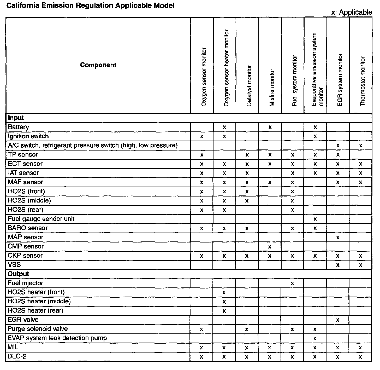 California Emission Regulation Applicable Model: