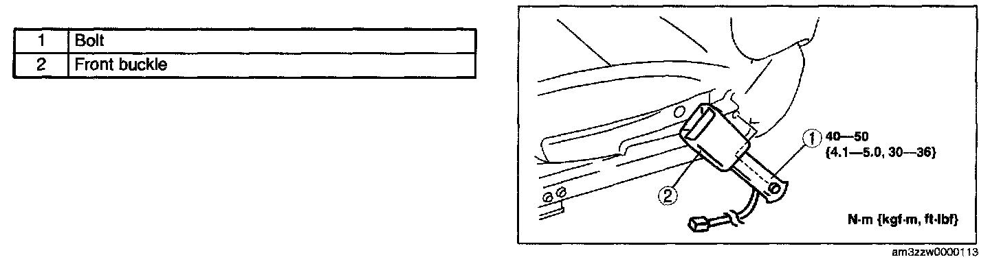 FRONT BUCKLE REMOVAL/INSTALLATION1. Turn the ignition switch to the LOCK position.