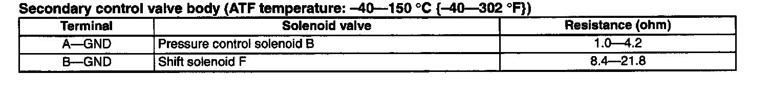 Secondary control valve body (ATF temperature: -40-150° C (-40-302° F))