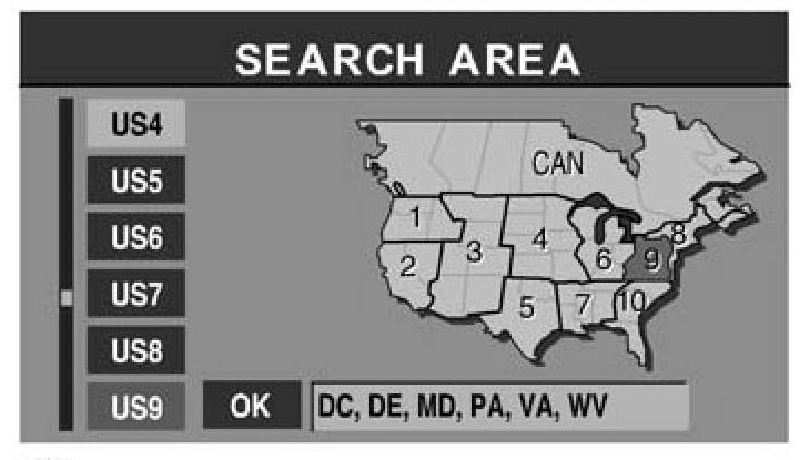 d. Select AREA (vehicle current position), press "OK".