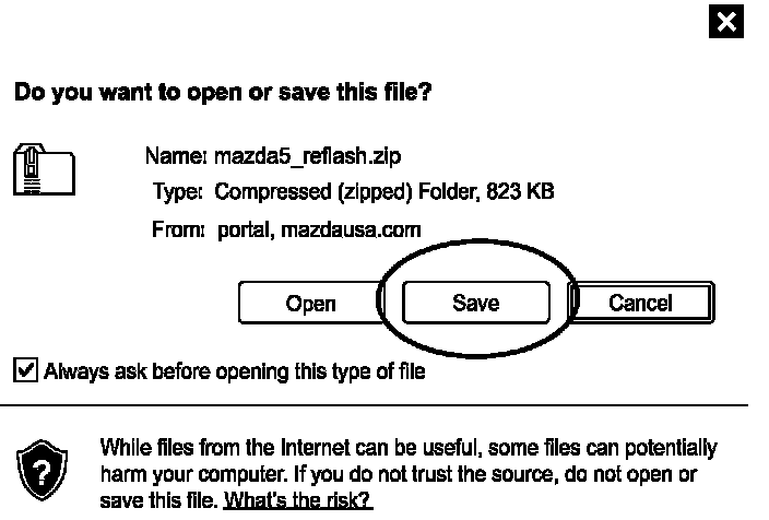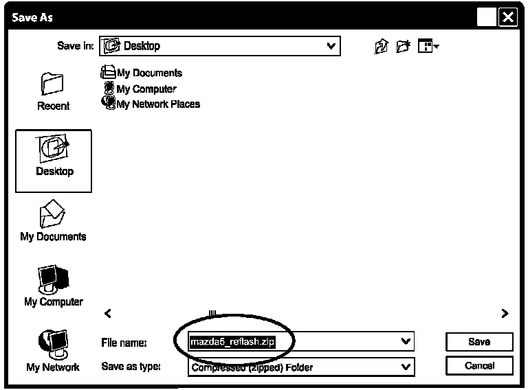 7. Save mazda5_reflash.zip to the Desktop.