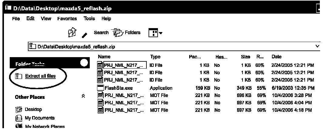 8. Navigate to the mazda5_reflash.zip file on the Desktop and open it.