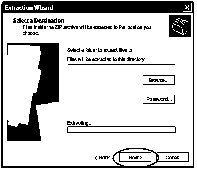 10. The Extraction Wizard window will open. Click "Next" to continue.