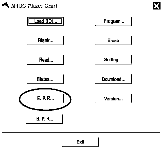 14. Click the "E.P.R (Erase/Program/Recheck)" button in the "M16C Flash Start" window. The "Erase" window will be displayed.