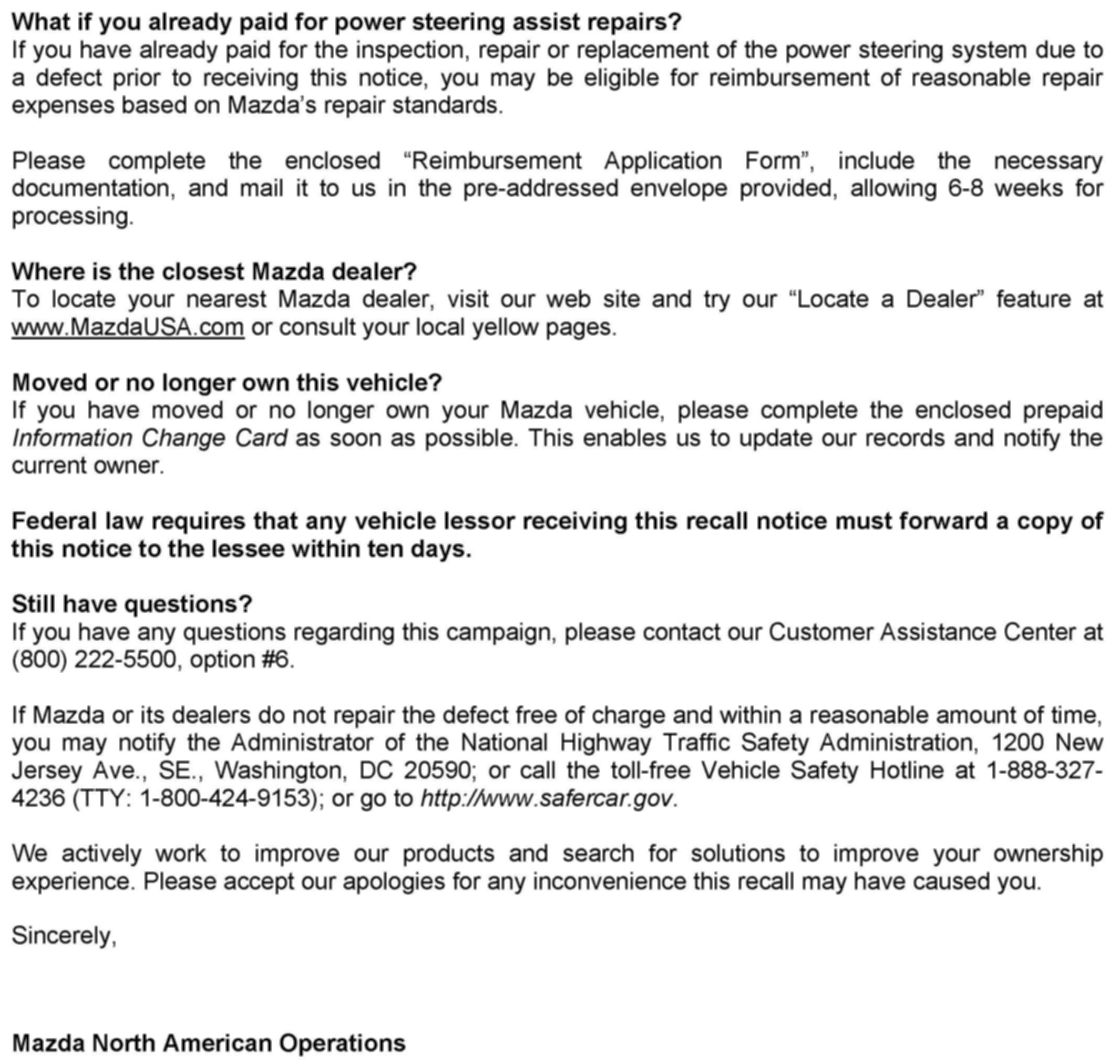 Recall - Loss Of Power Steering Assist