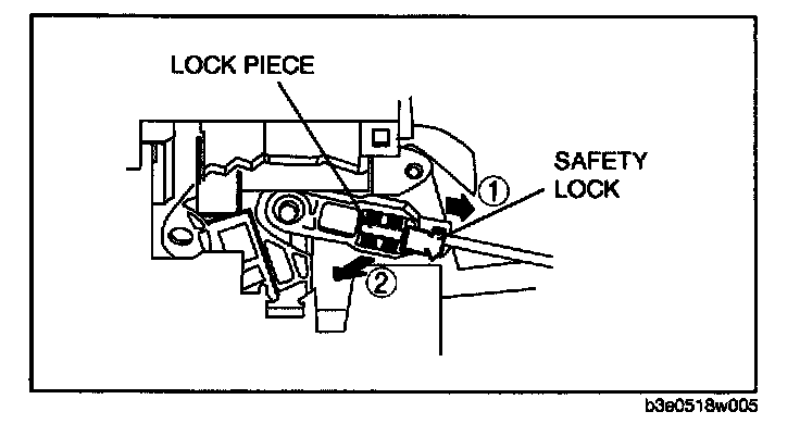 5. Lock the lock piece and safety lock of the selector cable (selector lever side) in the order as shown in the figure.