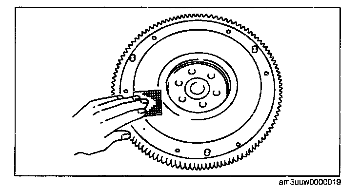 ^ Inspect the runout of the surface that contacts the clutch disc with the flywheel installed to the crankshaft.